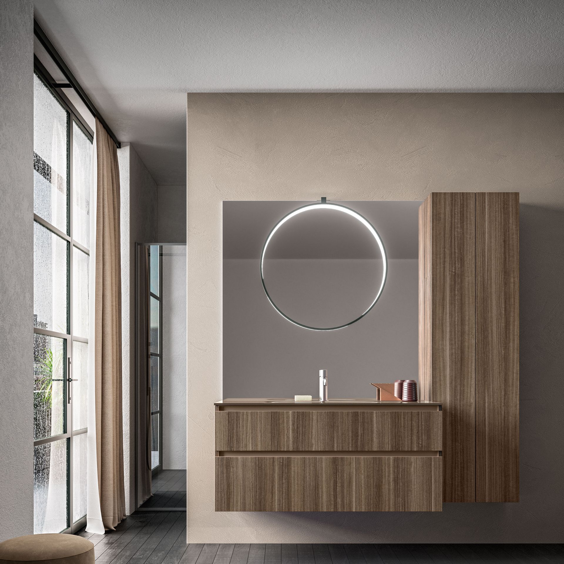 Das Badezimmerlicht sollte nach Möglichkeit freundlich sein. Denn wenn einen das eigene Spiegelbild nicht nur unausgeschlafen, sondern auch bis ins letzte Detail ausgeleuchtet am Morgen begrüßt, dreht man am liebsten gleich wieder um. Für einen guten Start in den Tag ist daher eine ausgewogene und stimmungsvolle Beleuchtung vorteilhaft. Sie sorgt außerdem für ein freundliches Wohlfühlambiente und ideale Lichtverhältnisse. Eine extra Wandlampe oder eine dimmbare Spiegelleuchte machen da bereits einen großen Unterschied.