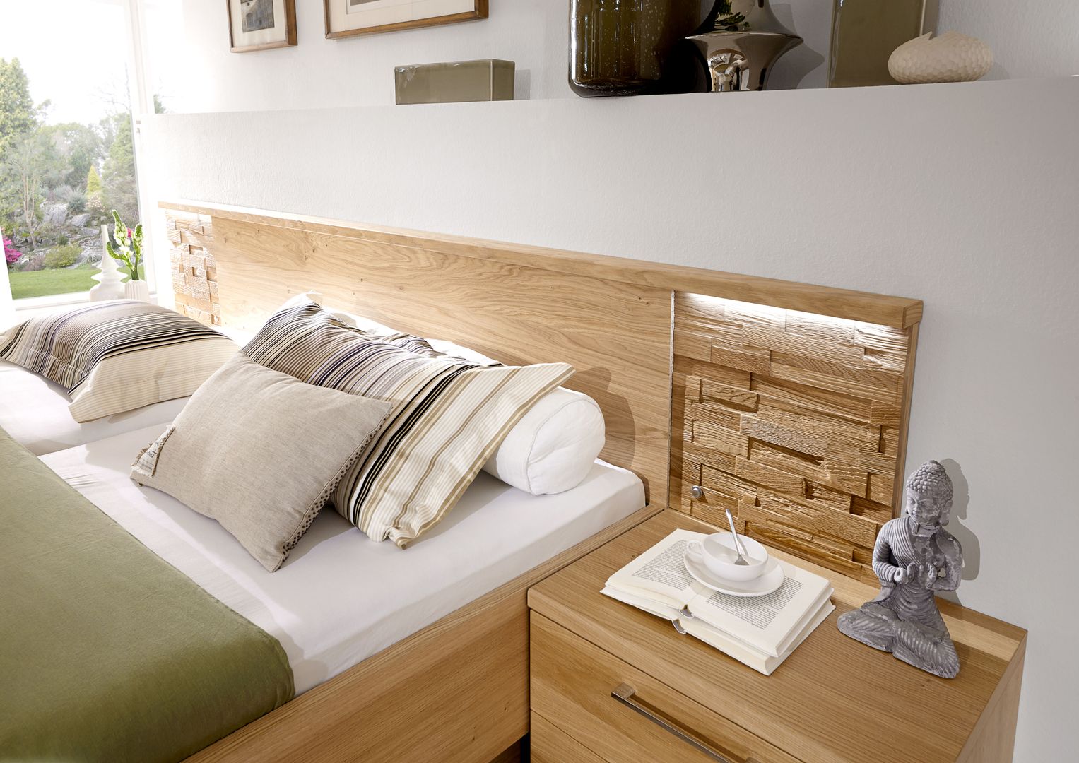 Der Trend der kleinen persönlichen Trauminsel, auf die man jeden Abend zum Kurzurlaub startet, ist mittlerweile ein probates Mittel, dem Alltag zu entfliehen. Fröhliche bunte Drucke mit floralen Mustern, Animal Prints und viel Grün entführen in eine kleine Welt der Entspannung, das Naturflair bringt Ruhe und Geborgenheit und ein relaxtes Urlaubsfeeling. Hohe gemütliche Kopfteile beim Bett garantieren eine gemütliche Lümmelatmosphäre.